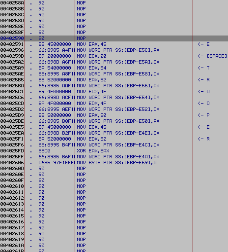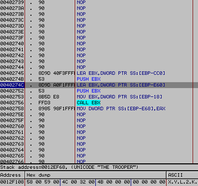 3) Assemble the string 'THE TROOPER' in a buffer.