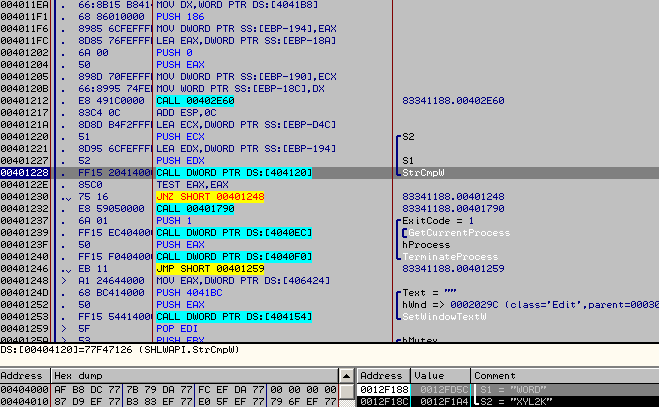 Code to unlock Windows: WORD