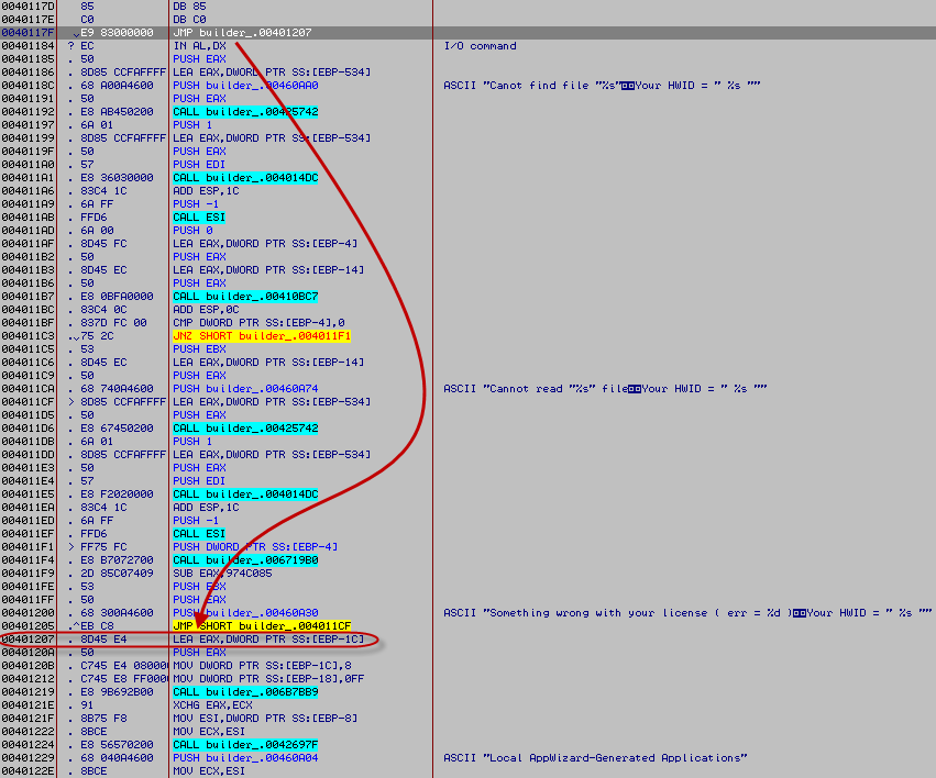 Goal is to go on the line under the JMP, when done SpyEye will load correctly