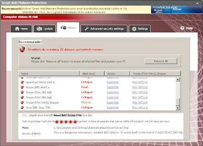 Smart Anti-Malware Protection is a fake Antivirus. This rogue displays fake alerts to scare users. It replaces Antivirus Smart Protection, Malware Protection Center, Internet Security Guard, Home Security Solutions, Home Safety Essentials, Anti-Malware Lab, System Smart Security, PC Security Guardian, Best Malware Protection, Internet Security Essentials, Smart Internet Protection 2011, Personal Internet Security 2011, Personal Security Sentinel, Internet Antivirus 2011, Internet Security Suite, Smart Security, My Security Shield, Security Master AV, My Security Engine, Security Guard, CleanUp Antivirus and Security Antivirus