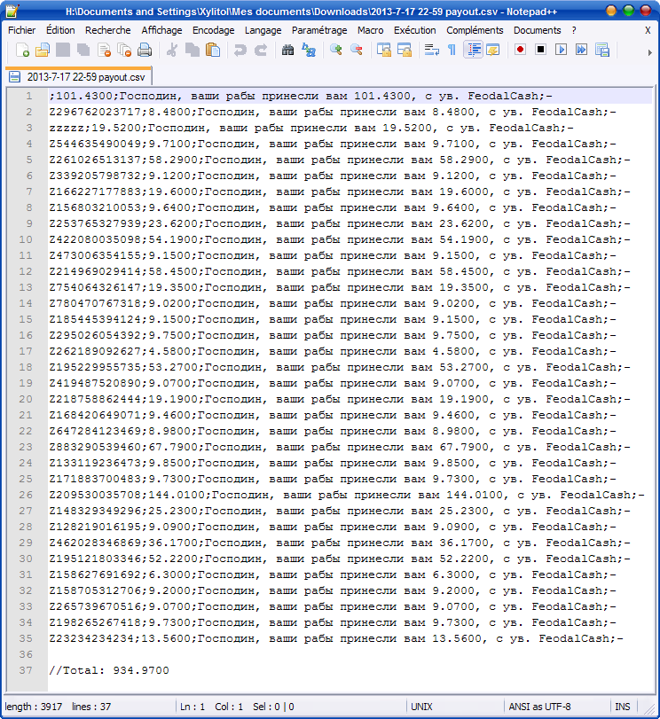 There is a 'debug' feature if you create the file %APPDATA%/feodalcash.txt with some datas on it: