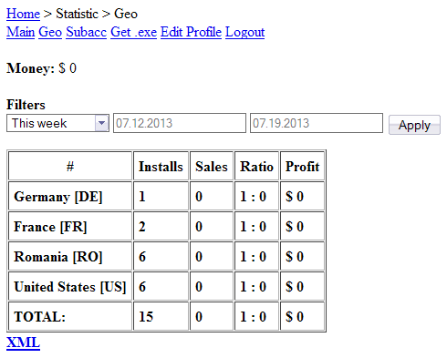 Now that we got a view of the administrative panel, let's see from the affiliate interface.
