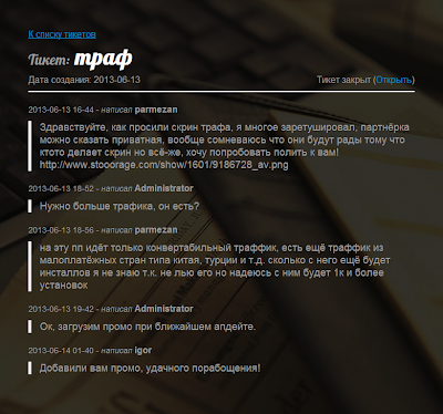 "Hello, here is a traffic screenshot as you asked, i masked a lot of things, this parthner program is private, i'm not sure if they will be happy knowing that someone took a screenshot, but anyway, i'd like to try to direct traffic to you! http://www.stooorage.com/show/1601/9186728_av.png"