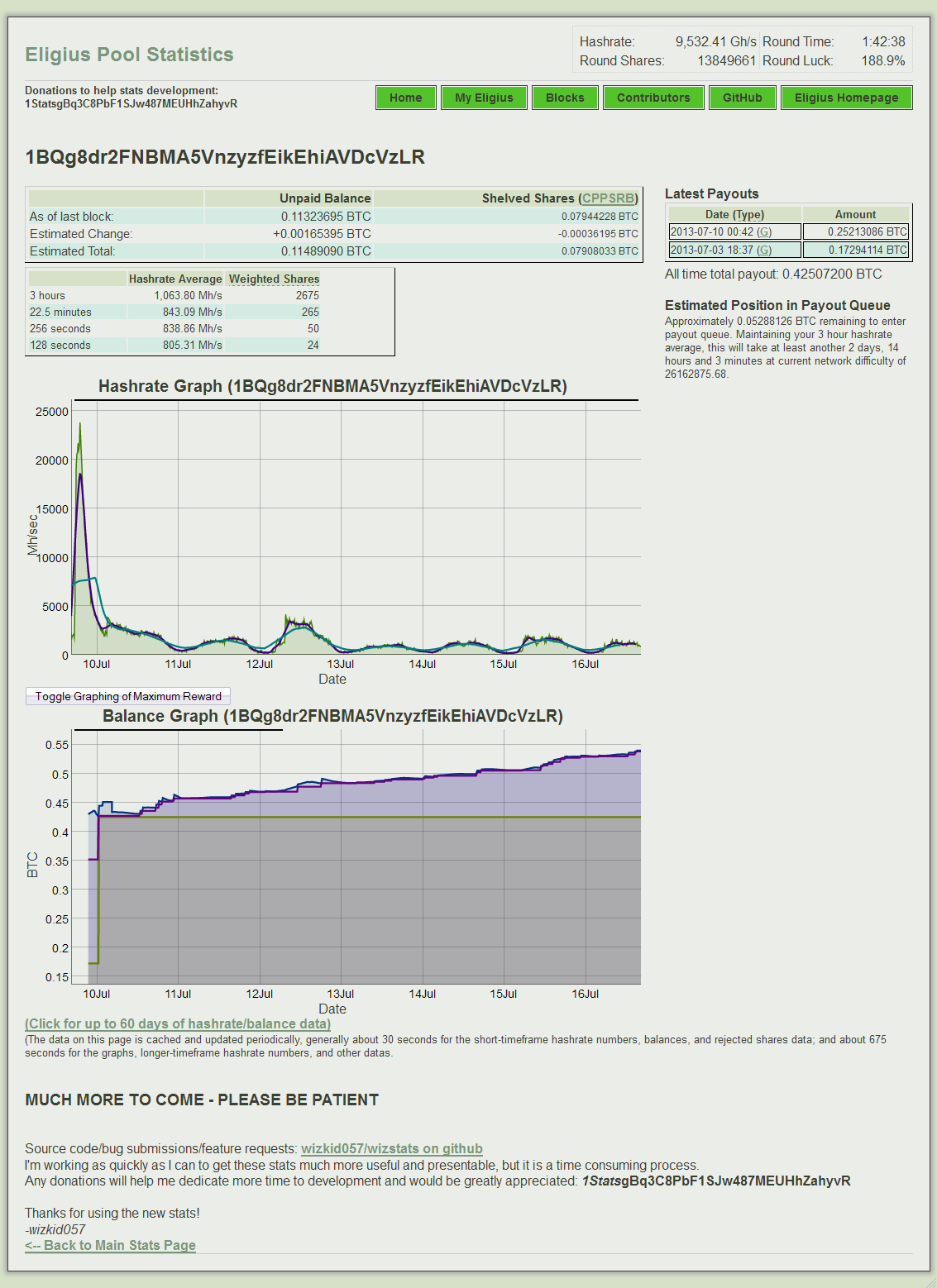 If we go to the pool for see wallet statistic: